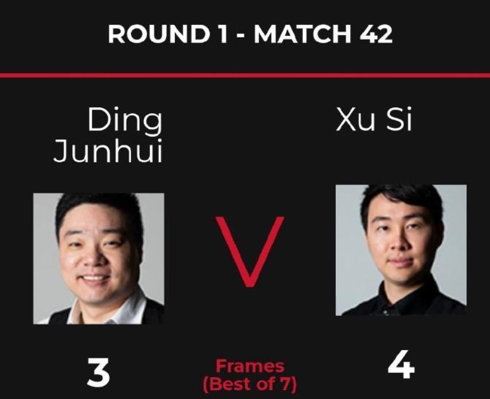 丁俊晖凭借50+拿下首局,但徐思连扳三局取得赛点,丁俊晖虽然之后打出单杆133分和59分将比赛追平,可决胜局,徐思抓住丁俊晖的失误上手,单杆138分绝杀赢下了比赛。